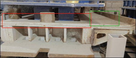 A: plataforma gehigarria materialaren gurditik material-ihesak murriztea da. Moldearen markoaren tamainaren eta egituraren arabera orekatuko dugu pisua, grabitate-zentroa konformazio-eremuaren erdigunetik gertu eduki nahian.